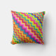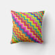 Zigzag chevron patterned pillow cushion in vibrant colours including orange, yellow, red, purple, pink, blue and green hues. Would look great in a modern property or to add a touch of bold bright vibrant colour to a room. Pattern by Sarah Trett.
