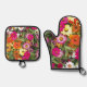Colourful Zinnia Garden Floral Oven Mitt & Pot Holder Set