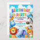 Invite your child's friends to an unforgettable zoo-themed birthday party with this adorable invitation featuring a joyful group of zoo animals under a bright, blue sky. Perfect for animal-loving kids, this charming design sets a fun, adventurous tone for any celebration.