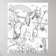 This children's poster features a whimsical unicorn in a fantasy landscape, complete with a vibrant rainbow, a scenic castle in the distance, and a variety of flowers. The unicorn itself is styled a playful expression that invites the imagination. The setting is peaceful and magical, aimed at sparking joy and creativity in any child's room.