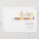 This modern wedding invitation uses colourful individual letters of the bride and groom's first name as the design element. Fresh, trendy and colourful. Easily customised. The design is shown on "linen" ::ENVELOPES INCLUDED::