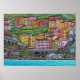 A Print of beautiful, colourful, stylised painting of Manarola Cinque Terre by Lisa Lorenz, Select the size and paper you desire. Can be printed for a big colourful print.