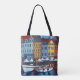 Colourful stylised painting scene of Nyhavn Harbour in Copenhagen by Popular Artist Lisa Lorenz now Available on an stylish All-Over-Print Tote Bag.