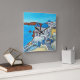 Add some beautiful colour and design to your home with this Vibrant, stylised painting of beautiful Santorini, Greece with its majestic blue dome by popular artist Lisa Lorenz on a stylish wall clock.