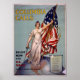 A World War I poster showing Columbia holding a flag and a sword while standing on top of a globe created by Vincent Aderente.
