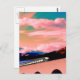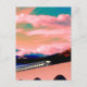 A black futuristic train climbs a sun-painted pink bridge through the scenic Columbia Gorge. Sky and clouds shade through blue, turquoise and pink. In the same style as Art Deco travel posters, the perfect gift for art, train and landscape lovers! Painted in Photoshop.