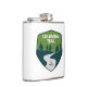 The flask itself is fine. It’s a cheap flask, obviously bought in bulk, however am prepared to overlook that. Given that it is a personalized item, I would have liked to have seen gift boxing instead of the generic packaging. Terrible printing, and/or quality. It’s a cheap, tacky vinyl. It is not cut straight and is also applied in a way that it is overhanging the bottom, causing the glue to catch on items and it will eventually roll and tear, damaging the wrap.