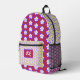 A backpack with beautiful images of columbine flowers. The images and background can be personalised. Original artwork by W.B.