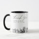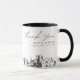 Modern Columbus skyline coffee mug favour gift with "thank you" script. The design showcases a stunning sketch with the ability to customise your names and exact location. Enter the Zazzle design tool for additional customisations.