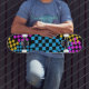 colured chequered deck skateboard