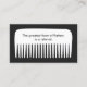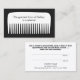 Fun memorable design featuring big white comb in black background. A super cute referral card in the disguise of a gift certificate for both parties. Great for anyone in the beauty or fashion industry. Black and white colour scheme.