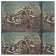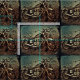 Motorcycle creatively edited image with a distressed feel has a background of faded blue and black border. Suited for quilting or crafting.