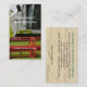 A close up photo of a modern green and white combine harvester showing part of the cab and part of the red pickup reel, on the reverse is a pale image of a stubble field, on a business card template for agricultural contractors, crop farmers etc.