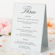 An elegant dual purpose wedding table number and menu sign to place at the centre of each reception table. All text is editable and is the same on both sides.