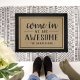 Add a welcoming touch to your front door with this cute and funny personalised doormat in classic black and tan. "Come in, we are awesome" appears in the centre, with your family name beneath.