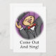 Multiple possibilities abound in this design. Come out of the closet and be who you are? Come out of hiding and shine on your stage? Sing with our chorale group or musical comedy troupe? Customise with your own thoughts, the name of your group, organisation or "come out singing" event. (Or just use it plain.)