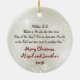 Inspirational customised nativity Christmas ornament features the greeting, 'Come, let's Worship Him.' The back of the ornament has Bible Verse Matthew 2:2, "Where is He who has been born King of the Jews? For we have seen His star in the East and have come to worship Him." Also a Christmas greeting with name and date which can be personalised with the details of your choice.-