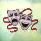 Vector illustration of comedy and tragedy theatre masks with a red ribbon. Tags: acting, actor, cinema, comedy, drama, film, frown, grief, happy, humour, joy, laugh, mask, movies, performance, sad, theatre, tragedy, smile, theatre