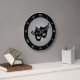 Beautiful design with the Greek theatre masks of comedy and tragedy on a silver clock face. White Roman numerals