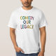 The image shows the words "COMEDY OUR LEGACY" spelled out in colourful, wooden letters The versatile design can be adapted to various t-shirt styles and colours.
