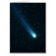 A blazing comet creates a brilliant fuzzy ball in the night sky, followed by a blue wispy tail as it moves slowly among the stars in this enhanced stellar view.