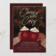 This festive invitation features an illustration of two hands holding red snowflake mugs of hot cocoa piled with cream in front of a Christmas tree in a red and burgundy colour scheme. The title says “comfy and cosy” but it can be changed to anything to reflect your event. This would be perfect for a cosy night in holiday party, hot cocoa party, festive girls night in or Christmas sleepover party.