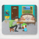This adorable mouse pad is the ultimate addition to your home or office! With a cute cartoon illustration of a woman taking care of her sick puppy and a playful kitten on the couch, it's guaranteed to bring a smile to your face. And let's not forget the beautiful red bird in his cage by the door! This mouse pad is the perfect gift for any pet lover who wants to add a touch of humour and cuteness to their workspace.