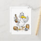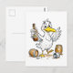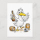 A lively coastal bird dances cheerfully beside wooden barrels, waving a bottle with comic enthusiasm. This humorous maritime illustration is full of character and charm, ideal for nautical décor and fans of playful coastal storytelling.