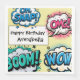 These custom party napkins feature a colourful comic book theme over a yellow background. Popular comic strip action words and phrases such as, "Oh, Snap!" "OMG!" "BOOM!" and "WOW!" are placed around the edges in speech bubbles. A sample "Happy Birthday" message is printed inside a text area followed by a sample name. You can personalise the napkins to include your own custom name or other text. It's perfect for a bridal shower, birthday party, or other exciting celebration.
