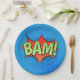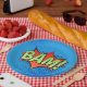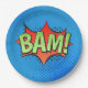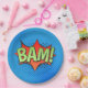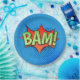 Bold, bright pop art / comic book exclamation, BAM!, on a blue background.