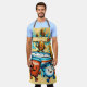Bursting baking ingredients comic book and 60s hippie style on this kitchen apron for men or women, perfect for looking awesome when cooking in the kitchen or at the grill.
