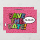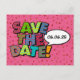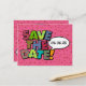 Comic Book Save The Date Pink Hearts Announcement Postcard