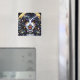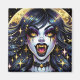 Halloween party magnet. Black and gold vampire with golden fangs and eyes comic book pop art ai art. Cool for Halloween or anyone who loves vampires..