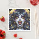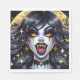 Halloween party paper plates. Black and gold vampire with golden fangs and eyes comic book pop art ai art. Cool for Halloween or anyone who loves vampires..