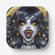 Halloween party paper plates. Black and gold vampire with golden fangs and eyes comic book pop art ai art. Cool for Halloween or anyone who loves vampires..
