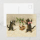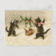 comic cats cat snowball fight Vintage Christmas Holiday Postcard