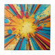 A bold and dynamic comic-style explosion ceramic tile inspired by classic pop art. Featuring vibrant bursts, halftone dots, and explosive energy in vivid blue, yellow, red and black tones, this artwork captures the retro comic book feel with a modern twist. Ideal for fun, energetic themes that demand attention and nostalgia.