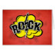 Comic style rock illustration with yellow cloud and halftone decoration on red grunge background