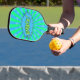 Comic Whack Logo Pickleball Paddle in blue and green.