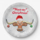 Brighten Up Your Christmas Table with these Unique "One of a Kind" Comical Longhorn Steer Party Plates! This Comical Longhorn Steer is Wearing a Christmas Hat and Ornaments and Wishing You a..."Moo~ey Christmas!