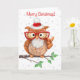 Comical Owl with Pease Sign, Merry Christmas Card