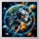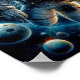 A lone astronaut floats in space against the vivid backdrop of Earth and numerous celestial bodies. Vibrant colours and intricate details capture the vastness and mystery of the universe.