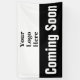 The top half of the banner is white. The bottom half is black. You can replace the display image that's at the top with your business logo. At the bottom, there's white display text you can edit to show a custom message (Shown: Coming Soon).