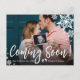 Coming Soon Photo Christmas Pregnancy Announcement postcards. Expecting parents! Modern white hand lettered typography "Coming Soon!" script card to share your happy news with family and friends. Features a white handwritten script, snowflakes overlay, baby foot (or print) and full photo. You can personalise the design by replacing the sample text and horizontal photo. #3343 If You need help or matching items please contact to me!