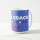 Comma La & Coach Stars Blue base coffee mug! Show your support for Kamala Harris and Tim Walz with this trendy blue coffee mug design. Featuring a comma and "la" to let everyone know how to pronounce Kamala's name and COACH, a nickname for Tim Walz plus the stars to represent a patriotic America. This coffee mug shows your support for Kamala Harris and Tim Walz for president and VP in the 2024 presidential election.