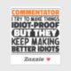 Funny Commentator Sayings "Commentator I Try To Make Things Idiot Proof But They Keep Making Better Idiots". Grab this Funny Commentator design as a funny gifts for an awesome mum, dad or friend.