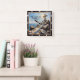 A visually striking wall clock depicting a strong wooden cross standing firm on a rocky elevation, set against a vibrant, textured sky overlooking a winding trail. The powerful call, "Take up your cross and follow me." - Luke 9:23, is clearly presented. This unique timepiece symbolises Christian commitment and the readiness to embrace sacrifice, serving as a profound daily reflection on dedication to Christ's teachings.