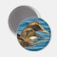 Male and Female winter plumage Common Eider pair in the Atlantic ocean off Sandy Hook, New Jersey reproduced on a round refrigerator magnet.