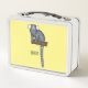 This is a standard metal lunchbox that appears to work just fine. We designed this box ourselves with an uploaded photo and custom text on the front and back. It looks absolutely beautiful except the front of the lunchbox is not centered like it shows in the photo. The print borders don't align with the inset flat part of the box where the preview photo online showed it perfectly centered in there. The back looks nice and centered though.