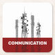 Silhouettes of communication towers with custom text. Vector icons with customisable colour.